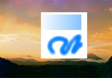 そして画像の上に貼り付けると下図のように貼り付けられます。つまり背景の白色を透明にした時と違って貼り付ける画像のアルファ値に応じて透明に貼り付けることが出来ます。