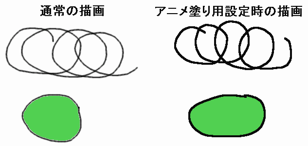 下図の左は通常の設定の場合、右はアニメ塗り用設定の場合です。
