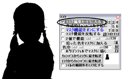 この状態でマスクウインドウを開き「マスク編集モードに入る」をチェックしてこのままマスク画面を表示します。