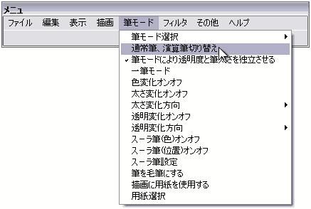 メニュの筆モードの「通常筆、演算筆切り替え」をクリックすると通常筆と演算筆を切り替えることができます。