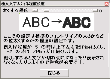 そうすると文字を太くする程度を設定するダイアログが表示されますのでスクロールバーを操作して17に設定して上下左右17ドット太くします。