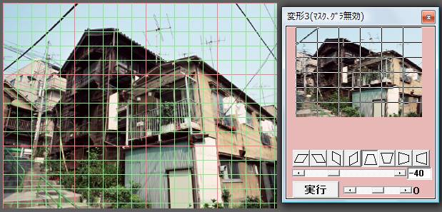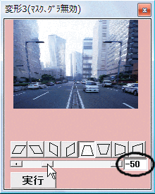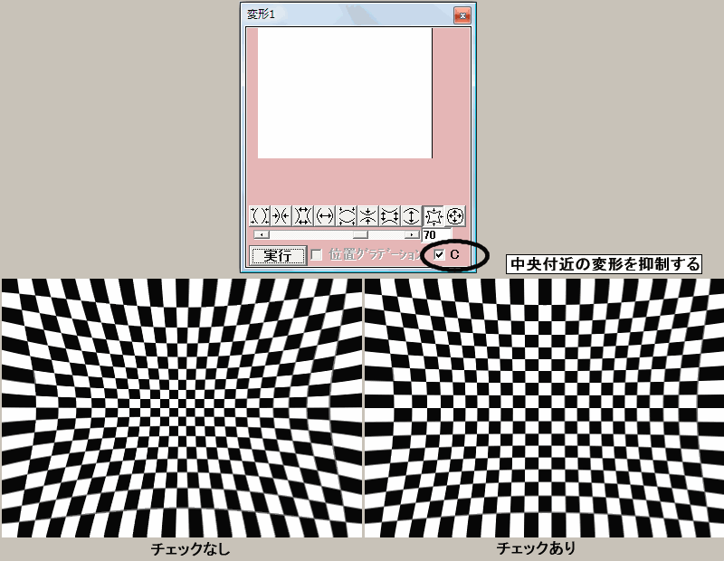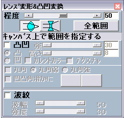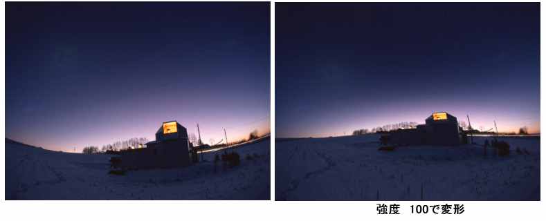 レンズ変形の下図のボタンが押し下げられている場合の変形の例です。