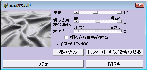 置き換えの元になる画像の明るさによって画像を変形するフィルタです。
