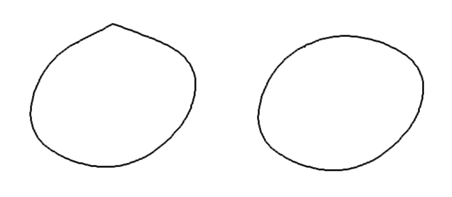 ここで言う閉曲線とは下図の右側のように角がなく全体に曲線のみで構成されているものを指す。左側は一応除外しています。ここでいう閉曲線を描くには特別に曲がり具合を調整する必要はありません。始点と終点を重ねるだけでえがけます。角が立たない滑らかな曲線に自動で処理してます。ちなみに下図左のように角のあるものを描くにはControl keyを押しながら描画します。
