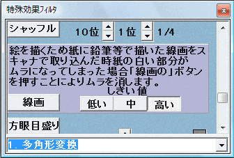 また特殊効果フィルタの「線画」フィルタを実行すると簡単にノイズがとれたりします。但しノイズのある地色が白色でなければなりませんが。