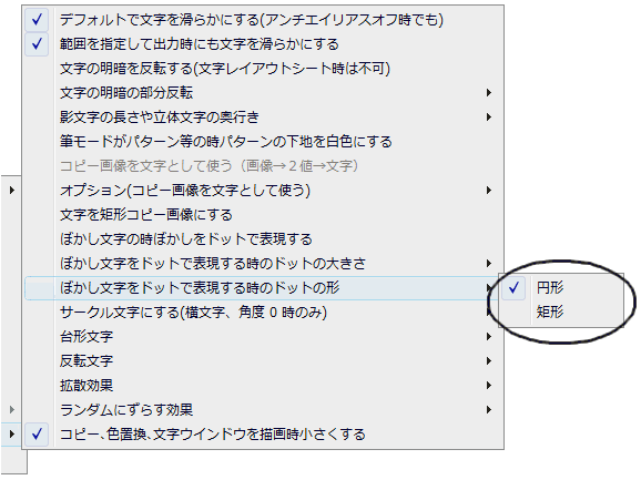 ドットの形状は円形或いは矩形のどちらかを選択できます。