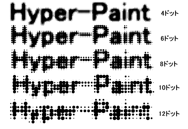 ドットの大きさは4,6,8,10,12のそれぞれの大きさに設定することができます。