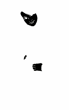 | マスクウインドウを開き、マスク編集モードに入り、白紙作成で「キャンバスサイズをチェックしてクリアしキャンバスのサイズにマスクのサイズを合わせた後「拾った色をマスクに加える」をチェックし上の絵の黒の部分でマウス右クリックしてマスクを抽出します。 | マスクウインドウの「マスク機能をオンに」と「マスクを反転して機能」をチェックして筆太さは7ぐらい透明度は50ぐらい灰色で髪の明るい部分を描きます。マスクが効いていますから黒い部分以外に描かれませんので気楽に描きます。 |