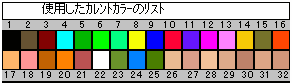 キャンバス上にマウスカーソルがある時、或いはパレット上にマウスカーソルがある時にスペースバーを押すと下図のようなウインドウが表示されます。表示される各色は描画に使用された色の履歴32色です。これから色を選択することができます。