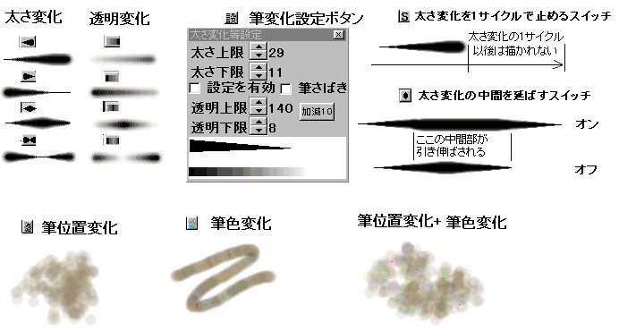 19と20は筆の位置や色にランダムな幅をもたせるオプションスイッチでスーラ筆オプションといいます。