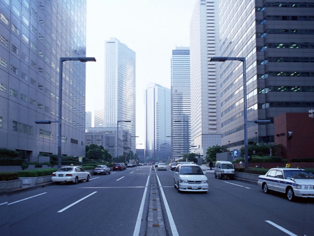 建物などを広角レンズで撮影すると下の画像のように上部がすぼまったようになります。このような画像を修正するには台形変形フィルタを使います。