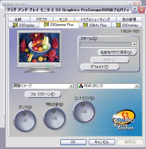 単なる趣味とか楽しみで絵を描いているなら余り神経質になることはありませんが画像をディスプレイで表示した場合に各人のデスプレイによってそれぞれ違って表示されます、パソコンのディスクトップを右クリックして表示されるメニュから「プロパティ」を選択し「設定」タブを選択、「詳細設定」を選択して下図のようにディスプレイの表示を調整することができます。しかしこれもあくまで自己満足にすぎませんが、実際の所どれが本当の色か比較するものが無ければ話になりませんしあったとしても完全に調整することは不可能だろうと思います。またパソコンによっては調整できない場合もあります。