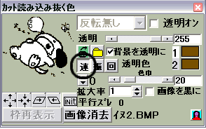 下図のように○印の「連」のボタンを押し下げるとフリーハンドで連続してペーストすることができます。