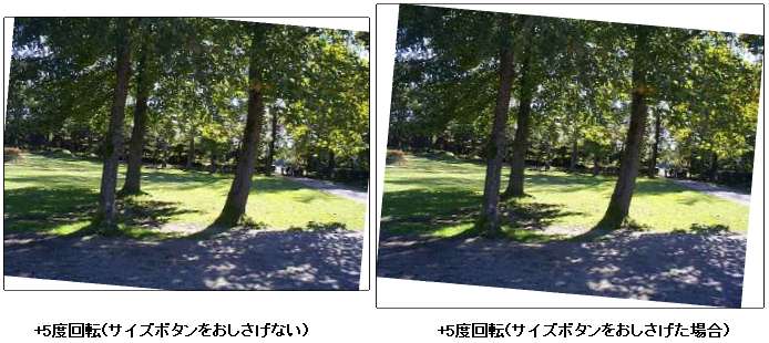 下図は回転後の画像の例です。「サイズ」ボタンを押し下げていると回転に伴ってキャンバスを広げます、押し下げていない時はキャンバスの大きさはそのままです。Hyper-Paintの回転は高画質で画像の崩れは殆ど有りません。