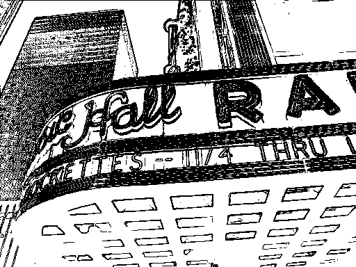 シャープフィルタで例えば輪郭値が5であったとした場合上の画像から輪郭として見出す値は、およそ下の画像のようになります。つまり輪郭値が小さいので輪郭として判断される部分は少なくなります。