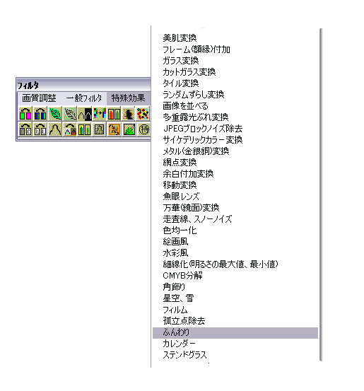 別の方法は特殊フィルタ内の「ふんわり」フィルタを使う方法があります。