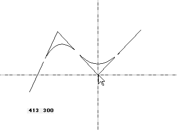 スプライン曲線は直線で各地点を次々に指定していき最後に右クリックすると指定された各直線に内接するように曲線が引かれます。内接といってもどのように引かれるのか想像できない方もあると思いますので下図に示します。