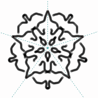 筆で対称描画のあと塗りつぶしをする時この塗り潰し機能には対称位置の一括塗り潰しの機能もあります。下図は5点対称の場合です。
