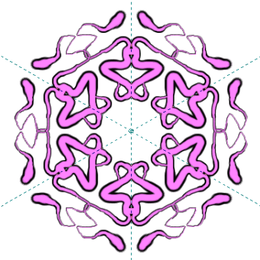 回転対称描画に左右線対称描画を組み合わせることもできます。