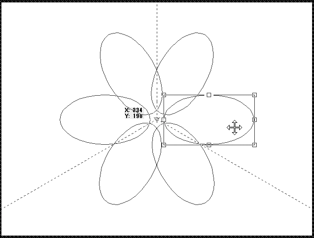 点対称描画は 2 点から 16 点までの点対称描画が可能です。今回下図は 4 点対称描画機能を使ってみます。