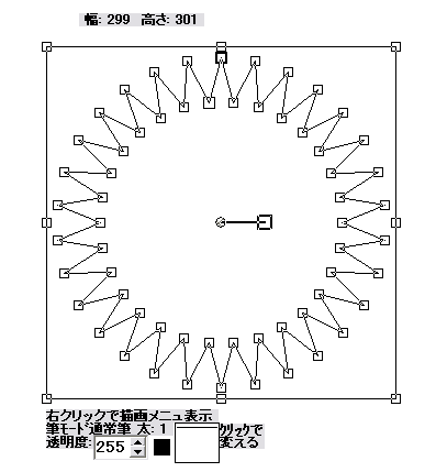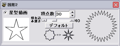 下図のように頂点数を30として「切れ込みの深さを40とかなり浅くします。そして「描画」ボタンを押して実行します。