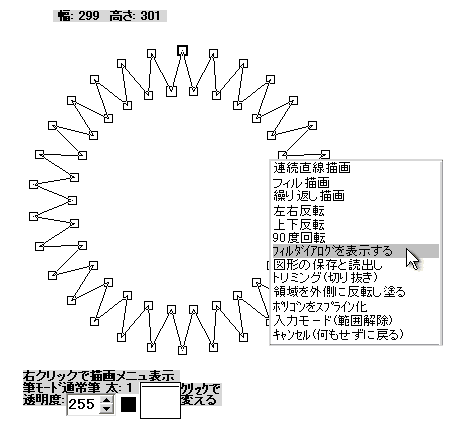 次にキャンバス上で右クリックして描画メニュを表示して「フィルダイアログを表示する」をクリックします。