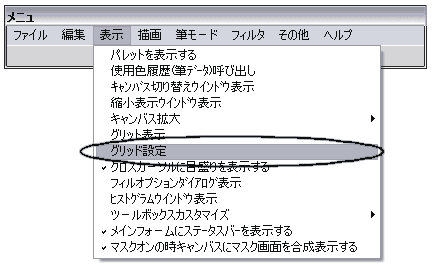 グリッドの設定を行うにはメニュの表示の「グリッド設定」をクリックします。